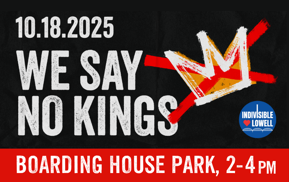 Thank you for all who gathered in downtown Lowell to make it clear that we won’t be ruled by fear! You joined more than five million Americans, in over 2,100 towns and cities, to say WE DON’T DO KINGS IN AMERICA!